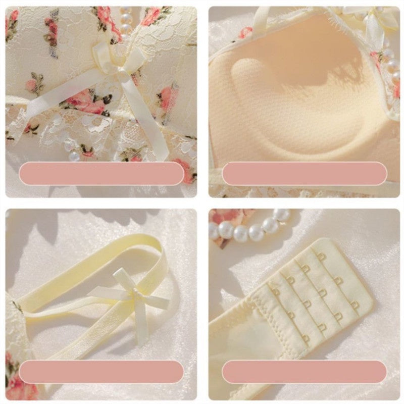 Cute Lace Flower Embroided Adjustable Straps Push Up Bridal Padded Bra 017